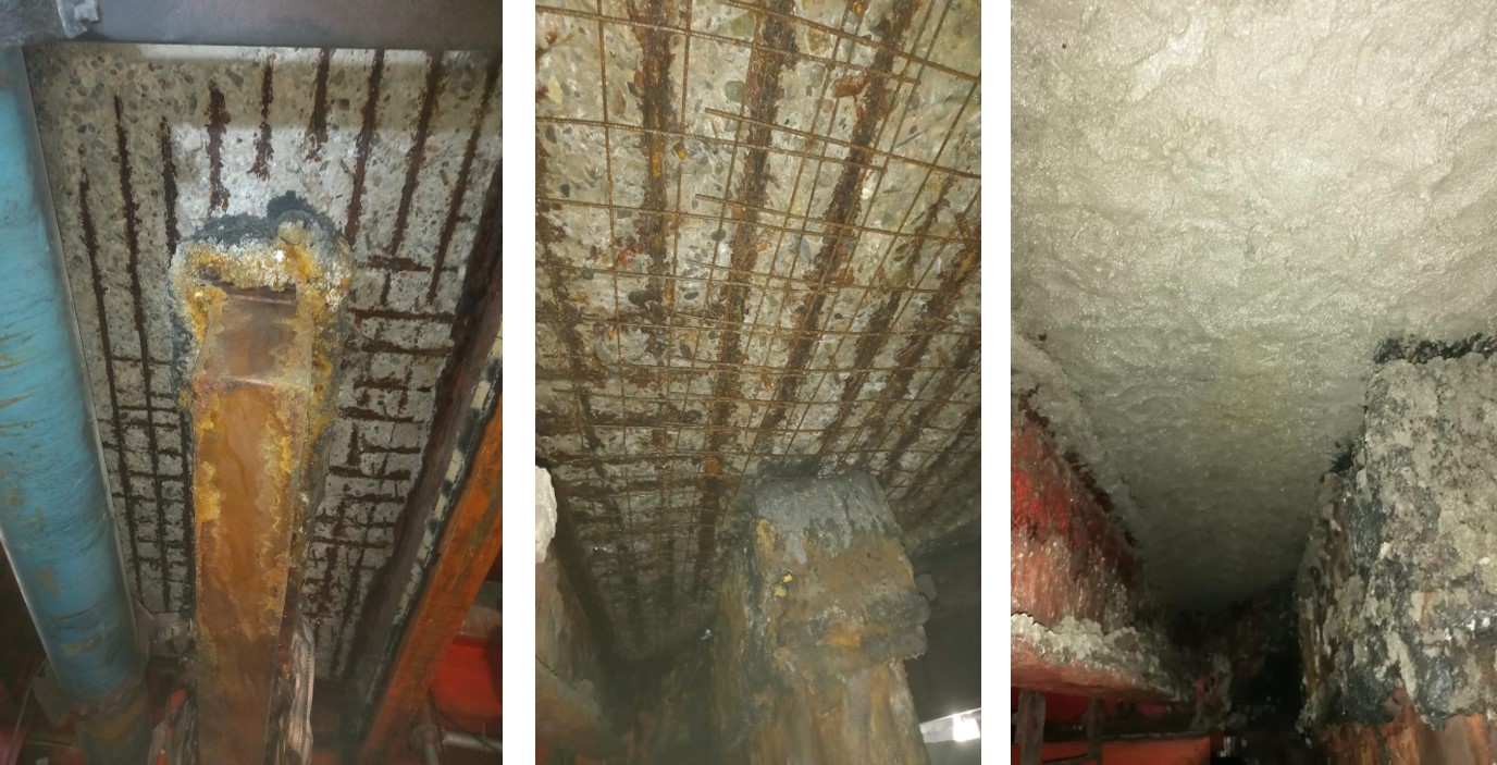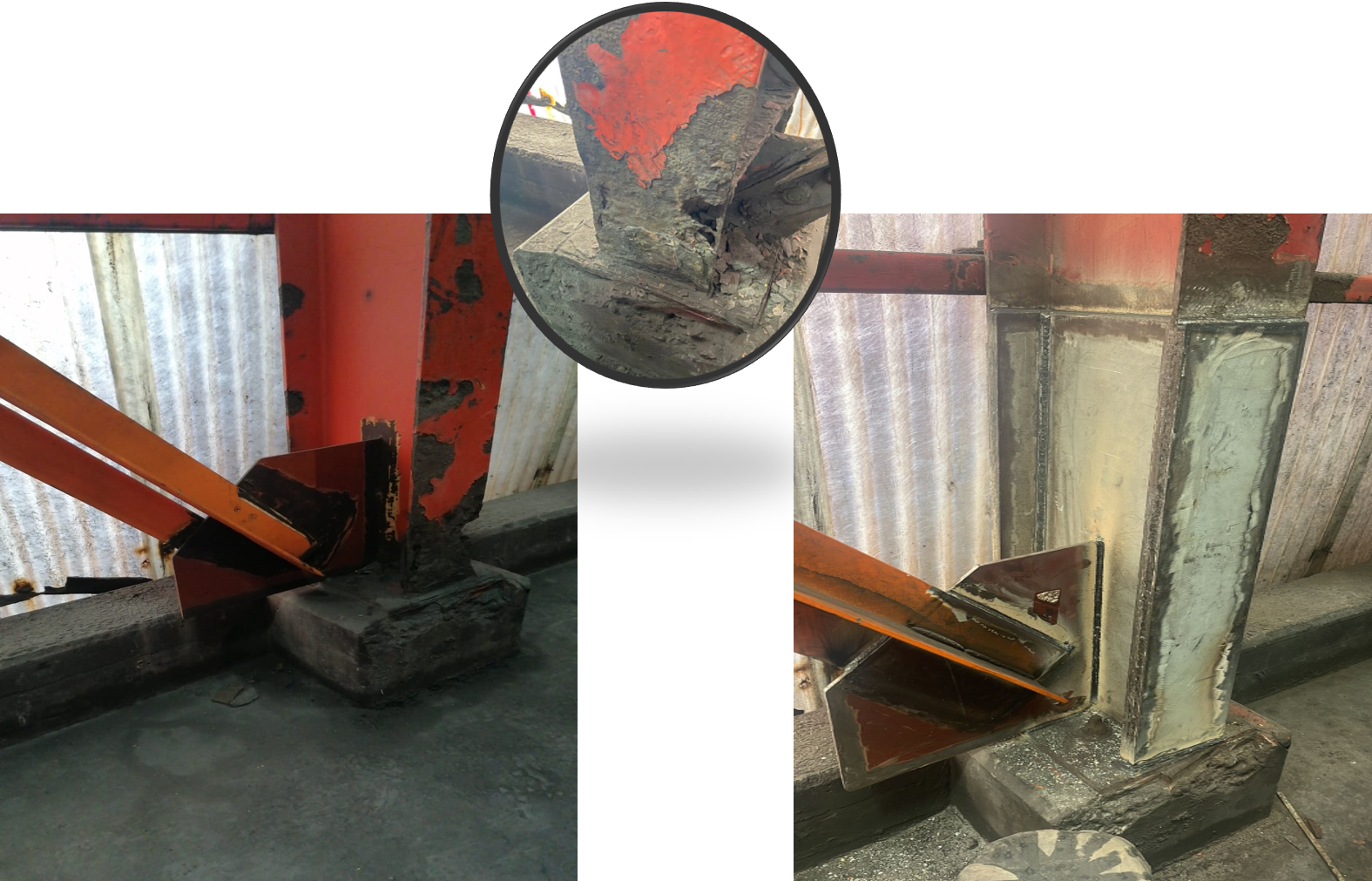 Intervención técnica para la recuperación estructural de componentes en acero y hormigón. Incluye análisis estructural, reparación de fisuras, corrosión, refuerzos con placas de acero, pernos de anclaje, inyecciones epóxicas, y aplicación de soluciones estructurales según normativa chilena (NCh) e internacional (ACI, ASTM).